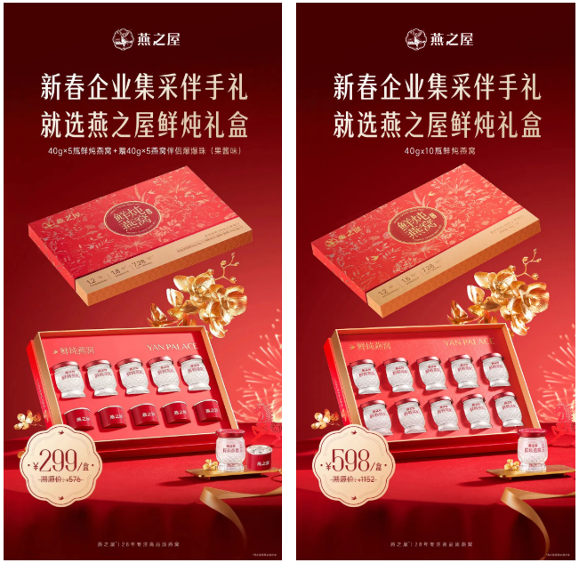 新春礼赠,贵在 “心意相投,体面相宜”。燕之屋懂深圳人的礼赠需求:无论是给员工的暖心福利、给客户的诚挚答谢,还是给长辈的孝心陪伴,既要贴合健康趋势,又要衬得上年味的喜庆、情谊的厚重。