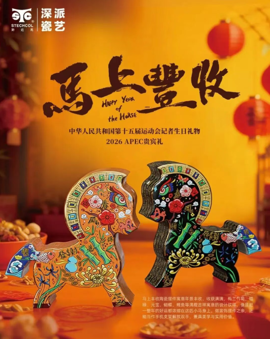 但很少有人知道,这些惊艳世界的瓷艺,都诞生于龙岗的生产车间。斯达高始终坚持 “深圳创造”:创始人詹培明带领团队将 “潮彩” 非遗技艺与现代煅烧科技融合,让每一件瓷器既有古典纹样的细腻,又有符合当代生活的实用--能当手机支架的 “马上丰收” 摆件,藏着 “顺风顺水”“年年有余” 的美好寓意;灵感源自大运中心的 “水晶石” 系列,把龙岗的建筑记忆变成可触摸的文创;就连与华为合作的定制礼品,也在方寸瓷面上,平衡了科技感与东方美学。