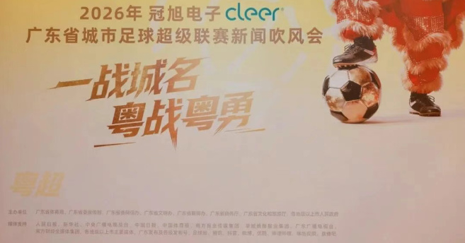 对粤超联赛而言,冠旭电子的冠名带来了资金、技术与品牌资源,助力赛事完成全面升级。2026年粤超联赛共设123场赛事,4月25日广州越秀山体育场揭幕,10月底结束决赛,全省21支球队、826名球员将为城而战。Cleer的技术赋能,将进一步提升赛事的专业度与观赛体验,推动广东足球事业向精细化、智能化方向迈进,助力打造全国顶级省级城市足球联赛IP。