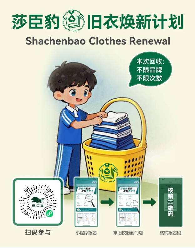 此次活动,是莎臣豹在 “潮流与环保共融” 方向的又一实践,既让家长以日常消费践行低碳生活,也让校服这一特殊载体传递环保理念。据了解,后续莎臣豹将联合更多品牌伙伴,通过环保公益发布、工艺升级等行动深化绿色布局。而 “旧衣焕新计划” 也将持续推进,以更广泛的门店覆盖、更完善的循环体系,让每一件旧校服告别闲置,推动绿色消费成为深圳校园生活的新潮流。