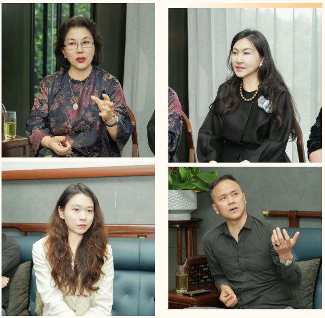 翠绿集团副总王伟龙介绍道:集团1996年起深耕黄金产业链,总部位于水贝 1号,设北派花丝艺术馆,他提出黄金产品与传统纹样的结合可能;比克数字董事长公长生表示,公司文化产业板块(曾创作《大头儿子和小头爸爸》,正打造对标《哪吒 2》的《花木兰》动漫)拟与艺术馆合作,挖掘藏品背后故事进行内容创作;全息影像副总裁郑伟仪 (深耕全息技术十余年,落地遵义等多地文旅项目)则探讨了以全息技术赋能珠宝展陈、文创展示,降低企业应用成本。